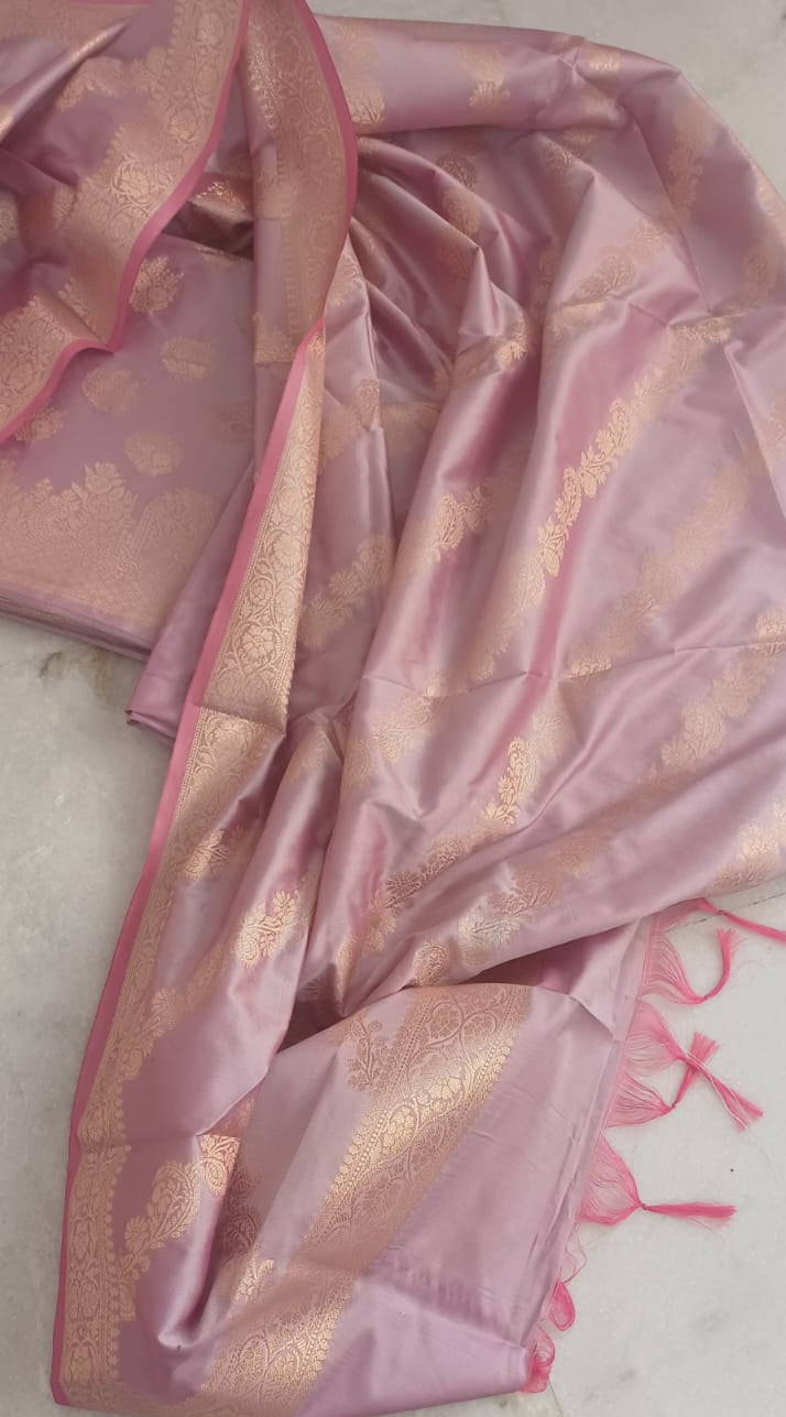 Unstitched Tapeta Silk Onion Pink Suit For Women-Resham Weaving