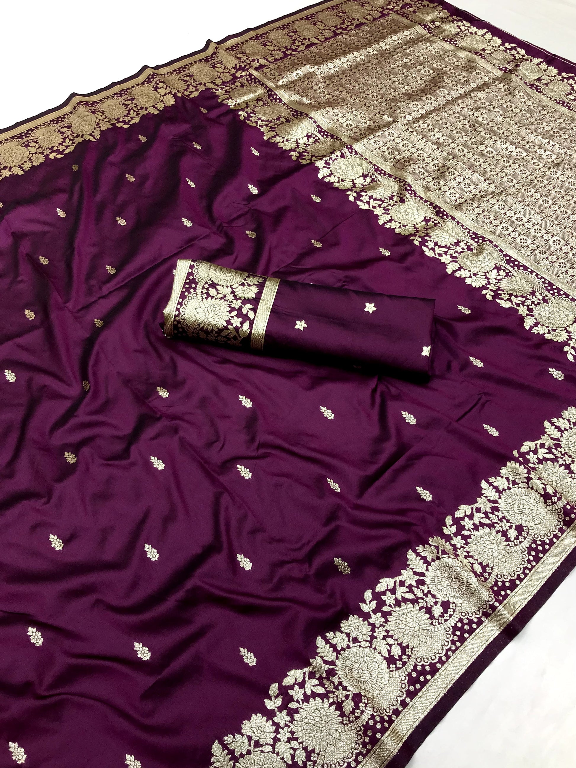 Women Pure Soft Banarsi Silk Saree Dark Purple With Zari Weaved